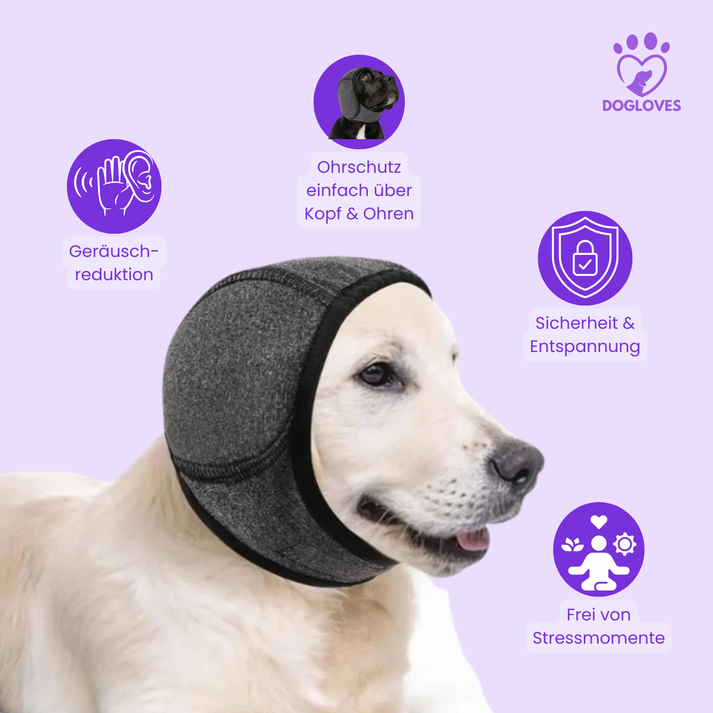 Der Dogloves Ruheohr hilft deinem Hund, diese Geräuschflut abzufangen.
